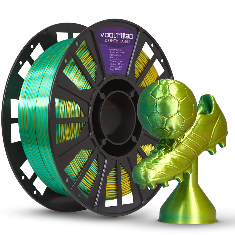 Filamento PLA Duo Color Shadow Dourado e Verde V-Silk - Voolt3D - 1Kg